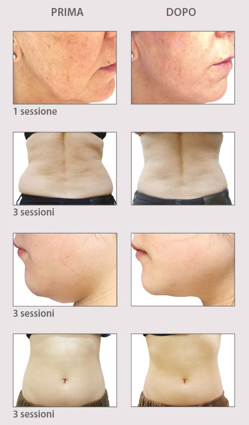 Già dopo le prime sedute l’effetto risulterà evidente: la pelle nell’area trattata risulterà più tonica e compatta senza lasciare aree di ondulazione cutanea in quanto il trattamento è anche attivo sulle fibre di collagene. I risultati positivi della procedura sono a medio/ lungo termine a seconda dei casi.